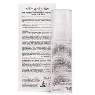 Гель для умывания мягко очищает кожу от загрязнений и макияжа; оставляет ощущение свежести и чистоты; активные компоненты геля способствуют быстрому увлажнению кожи; подходит для ежедневного ухода. Крем для лица дневной для сохранения молодости замедляет проявление признаков возрастных изменений кожи; смягчает и питает кожу лица; активизирует антиоксидантную защиту кожи; поддерживает естественный уровень увлажненности кожи и укрепляет ее способность к самоувлажнению. Крем для лица ночной для сохранения молодости смягчает и успокаивает кожу; способствует поддержанию оптимального водного баланса; возвращает коже упругость и эластичность; интенсивно питает и увлажняет уставшую кожу. Состав: Крем для лица дневной для сохранения молодости: Aqua, Glycerin, Cetyl Alcohol, Isopropyl Palmitate, Glyceryl Monostearate, Aqua, Planktonic Extract, Phenoxyethanol (планктона экстракт), Trimethylglicine (триметилглицин), Cyclopentasiloxane, Water (and) polymethylsilsesquioxane (and) Dimethicone (and) Isohexadecane (and) Cetearyl Methicone (and) РEG-40 Stearate (and) Steareth-2 (and) Steareth-21, Cyclopentasiloxane (and) Dimethiconol, Butyrospermum parkii (Shea) Butter (масло Ши), Sweet Almond Oil (масло миндаля), Aqua, Glycerin, Camellia sinensis (Green tea) Extract (экстракт зеленого чая), Jasminum Officinale Flower Water (цветочная вода жасмина), Aqua, Propylene Glycol, Centaurea Cyanus Extract (экстракт василька), Pearl Extract (экстракт жемчуга), Tocopherol Acetate (витамин Е), Soluble Collagen with Elastin (коллаген и эластин), Vaccinium Myrtillus Extract (экстракт черники), Colloidal Silver (кол