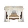 Садовые качели INTERSYSTEM BONI созданы для королевских персон. Отдых на такой качели должен быть просто божественным. Каркас садовых качелей Boni изготовлен из ценного натурального дерева ироко, что делает конструкцию более прочной. Натуральное дерево ироко отличается высокой прочностью и влагоустойчивостью. Благодаря содержанию большого количества собственных масел, дерево не подвержено гниению, так что вы спокойно можете оставлять качели на улице круглый год. Если вы остановили свой выбор на элитной дачной мебели, а именно на данной модели качелей, это говорит об изысканности и утонченности вашего вкуса. Белый материал, который покрывает качели, особенно акцентирует внимание на красоте дерева и его изысканности. А спадающий к низу белый балдахин погрузит вас в мир принцев и принцесс или просто беззаботного детства. В комплект садовых качелей Boni входят подушки, наполнитель материала - поролон.