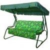 Комплектация садовых качелей Вираж: металлический каркас, непромокаемый тент, мягкие элементы.