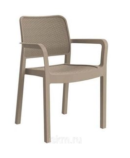 Пластиковый стул с невысокой спинкой и подлокотниками. Подходит для использования на курортах, в ресторанах, кафе, барах и на открытом воздухе.