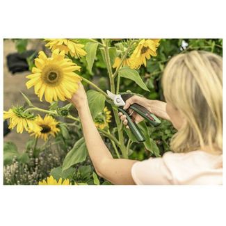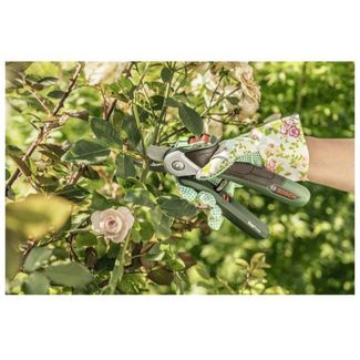 Подрезка с высокой производительностью – простое подрезание ветвей толщиной до 25 мм благодаря технологии Power Assist Чистый срез – безвредная для растения подрезка благодаря чистому срезу Простая зарядка – подзаряжается от специального зарядного устройства с разъёмом Micro-USB от Bosch Простое и интуитивно понятное управление схожее с эксплуатацией ручных секаторов. При распознавании сопротивления автоматически включается функция усиления Выставьте уровень усиления в соответствии с выполняемой работой; предусмотрено три уровня Power-Assist – низкий, средний и высокий Система обходного резания с двумя ножами из нержавеющей стали. Верхний нож легко заменяется Инструмент легко режет садовую сетку благодаря функции резки проволоки на режущем ноже Индикатор состояния батареи позволяет быстро определить уровень заряда аккумулятора Постоянная готовность к работе: без эффекта памяти и без эффекта саморазряда благодаря литий-ионной технологии