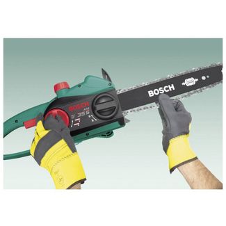 Точная резка: благодаря высококачественной цепи и двигателю мощностью 1.800 Вт. Практичность: система SDS для простой замены и легкого натяжения цепи. Качество: надёжная конструкция для долгого срока службы. Исключительная легкость и удобство в обращении Система Bosch-SDS для натяжения и замены цепи без использования дополнительных инструментов Скорость движения цепи 9 м/с для оптимальной производительности резания Тормоз, молниеносно реагирующий на отдачу пилы Надежная конструкция с исключительной долговечностью Эргономичная рукоятка, оптимизированная для распиловки и валки Стальные зубья для крепкого и надёжного упора Большой масляный бачок (200 мл) с указателем уровня наполнения Стальной улавливатель цепи