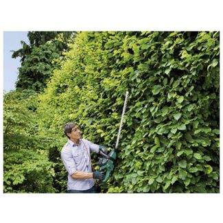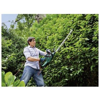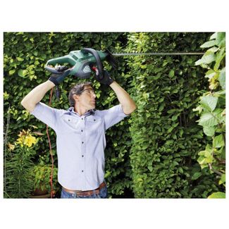 Электрический кусторез AHS 65-34 от Bosch весом 3,8 кг до 15 % легче предыдущих моделей. Благодаря улучшенному распределению веса устройство является простым в управлении. Прозрачная предохранительная скоба, задняя рукоятка с мягким покрытием и многопозиционная передняя рукоятка делает работу еще более комфортной. AHS 65-34 также прошел сертификацию ассоциации AGR, что подтверждает тот факт, что он причиняет меньший вред спине. Кусторез предоставляет максимальную производительность благодаря двигателю 700 В, изготовленным по лазерной технологии ножей с алмазной заточкой с функцией пиления и расстоянием между зубьями 34 мм. Его муфта скольжения со сверхвысоким крутящим моментом (50 Н•м) также обеспечивает высокую производительность. Основные характеристики изделия
