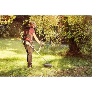 Мотокоса оснащена подшипником особого бесконтактного типа. Такие подшипники используются в аэрокосмической отрасли из-за их устойчивости к загрязнению и пригодности для работы на очень высоких скоростях. Это подшипники с крайне низким трением и очень тихие. Срок их службы значительно превышает срок службы традиционных подшипников с контактным резиновым уплотнением, которые быстро загрязняются пылью, подвержены перегреву и быстрому износу.