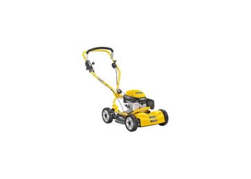 Четырехколесная модель максимально удобна в эксплуатации. Данная модель садовой техники снабжена удобной ручкой (складная с регулируемой высотой). Колесные диски изготавливаются на производстве из качественного сырья, для данной модели используют пластик. Для производства деки работниками компании применяется сталь. Модель позволяет выполнять качественный уход за садом благодаря бесперебойной работе двигателя.
