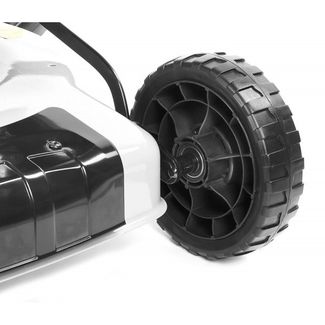 Задние колеса увеличенного диаметра облегчают нагрузку при передвижении газонокосилки