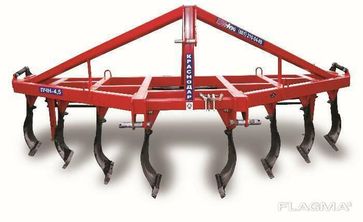 Плуг чизельный ПЧН-4,5 предназначен для глубокого безотвального рыхления почвы на глубину до 45 см.,уничтожения плужной подошвы, углубления пахотного горизонта. Применяется во всех агроклиматических зонах, в том числе подверженных ветровой и водной эрозии, на всех типах почв, кроме засоренных камнями, плитняком и другими препятствиями с удельным сопротивлением 0,1 Мпа и твердостью до 4.0 Мпа. Эффективно применение Плуга чизельного для периодического глубокого рыхления почвы без оборота пласта в системе почвозащитной консервирующей технологии обработки почвы. После обработки чизельным плугом по среднему слою на глубине до 30 см создаётся эффект щелевания, а нижние слои до 45 см взрыхлены и частично сдвинуты. При этом уничтожается плужная подошва, создаются благоприятные условия для осенне-зимнего накопления влаги.