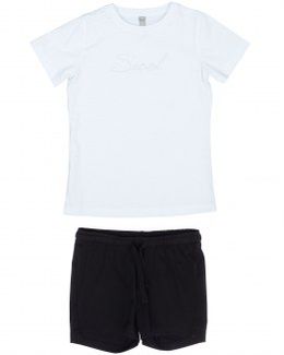 Комплект из белой футболки и черных шорт из коллекции Школа 2016 S Cool прекрасно подойдет для занятий физкультурой. Всегда актуальное сочетание белого и черного цветов. На футболке глиттерный принт с логотипом S Cool. Шорты с двумя карманами, на резинке, можно регулировать шнурком. Минимальная сумма заказа 1500 руб. Возможен самовывоз. Есть доставка.