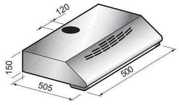 Тип: Козырьковая. Ширина в см: 50. Цвет: Нержавеющая сталь. Управление: Кнопочное. Монтаж: настенный. Производительность макс. (куб. м/час): 275. Размеры в мм (ВxШxГ): 150х500х505. Режимы работы: отвод/рециркуляция None Возможен самовывоз.