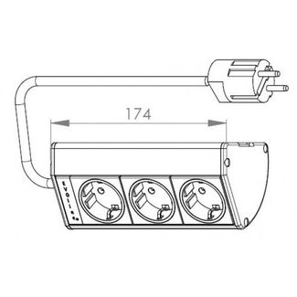 • Цвет корпуса серебристо - чёрный • 3 электрические розетки с заземлением 16 A 220 В • Длина кабеля 2,5 м • Крепление для скрытого стационарного монтажа к навесному шкафу или столешнице • Штепсельная вилка идёт в комплекте , но не соединена с кабелем • Габаритные размеры (Д х Ш х Г) : 174х74х75 мм