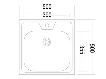 <br> Размер мойки (ШхГ): 500 х 500 мм.<br> Размер чаши (ШхГ): 390 х 355 мм.<br> Глубина чаши: 140 мм<br><br>