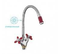 Тип: Двухвентильный Для кухни Тип катриджа: Керамический Силумин Серия: R127-10 Хром Китай 1 год Frud смеситель для кухни, двухвентильный, с керамическими кран-буксами, с высоким гибким гусаком, покрытие хром, с цветными декоративными вставками, красного цвета крепление на гайке, гибкая подводка 35 см. корпус силуминовый. None Страна производства: Китай