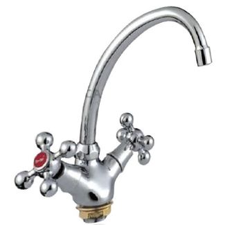 Латунный смеситель Frap F4119-2 для кухни. Оснащён двумя вентилями с керамическими кран-буксами в латунной оболочке. None Страна производства: Китай