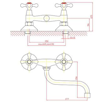 Смеситель ZOLLEN DORTMUND (арт. DO11420341) настенный нижний излив 177 мм