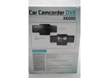 Автомобильный видеорегистратор Х6000 с двумя камерами и GPS модулем Встроенный двойной объектив может использоваться, чтобы вести запись изображения на лицевой и оборотной стороне одновременно. GPS модуль может записывать весь путь движения. Используя специализированное программное обеспечение, вы можете увидеть видео на компьютере, в то же время подключение Google карте через Интернет. Трек показывает на карте, и вы можете проследить маршрут транспортного средства. Встроенный датчик с G-Sensor. Технические Характеристики:- Датчик изображения: CMOS 1.3MP- Объектив: Передняя линза с ультра-широкий угол обзора 140 градусов; задняя линза с ультра-широкий угол обзора 120 градусов- Память: Поддержка micro SD до 32 гб- Экран: 2,7-дюймовый TFT-дисплей (16:9)- Видео формат: AVI- 1280*480 30pfps записи- Дополнительный язык: Английский / Немецкий / Французский / Испанский / Итальянский / Португальский / Китайский Традиционный и Упрощенный Китайский, Японский, Русский- Частота: 50HZ / 60HZ- ТВ-Выход: NTSC/PAL- Микрофон / динамик: Встроенный- ТВ-выход и ПОСТОЯННОГО доступа: 5V 500MA- G-sensor: Поддержка G-sensor- Аккумулятор: Встроенный Литий-ионный аккумулятор- Системные требования: Windows 2000/XP/Vista/Windows 7,MAC OS x выше 10.3.6- Рабочая температура: от 0 до 40 Градусов Цельсия