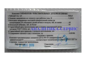 - Чувствительные элементы ДТ12.591-01 "Метан" для ПГФ-2М по выгодной цене Цену уточняйте руб.;