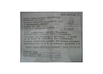 - Ячейка электрохимическая на СО ИБЯЛ 418.425.082 к Палладий-3М в каталоге Другие датчики в России;