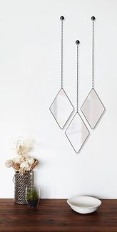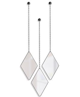 Зеркала Umbra Dima 3 штуки идеально подойдут для стильного декора комнаты. На подвесках расположены три зеркала ромбовидной формы. С помощью металлических крючков можно легко прикрепить к стене. Наличные, Visa/MasterCard, Яндекс.Деньги, WebMoney Возможен самовывоз. Есть доставка.