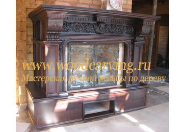 Декоративное оформление камина деревянной резьбой. Наша мастерская занимается художественной ручной резьбой по дереву. Мы оформим Ваш камин резьбой в любом стиле из любого материала.С каждым клиентом мы работаем индивидуально. И гарантируем, что мы не дублируем свои работы. Ваш камин будет выполнен по индивидуальному проекту!