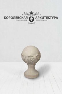 Эффектное навершие в форме шара, украшенного флористическим декором в нижней части. Такую модель можно установить на воротах, ведущих в резиденцию или особняк, использовать в качестве декора входной группы перед коттеджем, гостиницей или торговым центром. Также часто навершия нужны, чтобы привлечь внимание к балкону или террасе, украсить крышу здания или беседки. Кроме того, скульптуру «Шар с лепестками» выбирают для украшения интерьера, например, для декорирования лестницы.