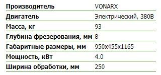 - Фрезеровальная машина VONARX VA-25S (380В) в каталоге Другие грузоподъемные строительные машины и оборудование в России;