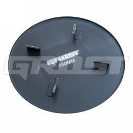 Затирочный диск диаметром 650 мм для затирочной машины GROST ZME600 (380В или 220В). Также подходит к затирочным машинам других марок - уточняйте размеры по чертежу в разделе "фото". Толщина стали 3 мм. Количество креплений - 4.