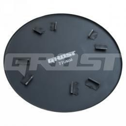 Затирочный диск диаметром 770 мм для затирочной машины GROST ZMD750. Также подходит к GROST ZMU и к затирочным машинам других марок - уточняйте размеры по чертежу в разделе "фото". Толщина стали 3 мм. Количество креплений - 8.