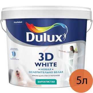 - DULUX 3D White краска в д для потолков и стен бархатистая (5л) DULUX 3D White краска ослепительно белая для потолков и стен бархатистая (5л) по выгодной цене 2 339 р. руб.;