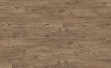 Напольное покрытие EGGER Laminat в формате классической половицы с имитацией древесины Дуб Ольхон дымчатый – современный декор ламинированного напольного покрытия в теплом оттенке коричневого цвета.