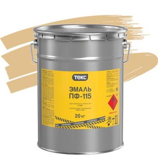 Эмаль Текс ПФ-115 Стройтекс бежевая 20 кг Эмаль алкидная Текс ПФ-115 Стройтекс – это эмаль для профессионалов. Она предназначена для окраски металлических и деревянных поверхностей (за исключением полов) внутри и снаружи помещений. Расход эмали составляет 3-10 м?/кг в зависимости от способа нанесения и впитывающей способности основания. Эмаль образует долговечное покрытие – до 2 лет. Перед применением эмаль Текс ПФ-115 Стройтекс необходимо тщательно перемешать, при необходимости разбавить уайтспиритом в количестве не более 10% от массы эмали. Эмаль наносится на подготовленную поверхность методом распыления, кистью или валиком (велюровым или меховым стриженым синтетическим) в 2-3 слоя. Эмаль Текс ПФ-115 Стройтекс наносится на чистую сухую поверхность. Температура воздуха и окрашиваемой поверхности должна быть выше +5?С, а относительная влажность воздуха – менее 80 %. None
