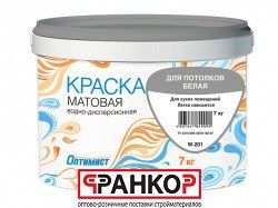 Краска для потолков "Оптимист W201" белая, акрил., матовая, мрзт 3 кг.