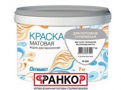 - Краска для потолков "Оптимист W203" супер-бел., латекс., матовая, мрзт 14 кг. по выгодной цене 628 р. руб.;