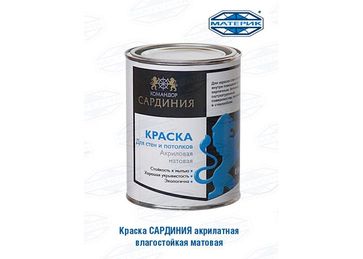САРДИНИЯ - матовая краска для стен и потолков Краска предназначена для окраски стен и потолков в помещениях с нормальной и повышенной влажностью по бетонным, оштукатуренным, кир-пичным поверхностям