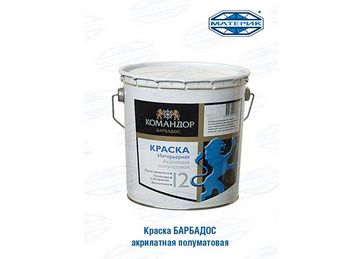 - Краска для стен и потолков полуматовая Командор Барбадос влагостойкая моющаяся 9л база С по выгодной цене 2 338 р. руб.;