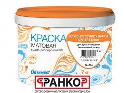- Краска для внутренних работ "Оптимист W204" супер-белая, матовая, латексная, морозостойкая 3 кг. по выгодной цене 158 р. руб.;