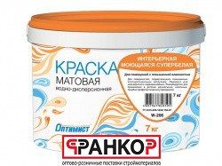 - Краска интерьерная "Оптимист W206" супер-белая, матовая, моющаяся, акриловая, морозостойкая. 14 кг . по выгодной цене 1 200 р. руб.;