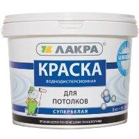 - Краска воднодисперсионная для потолков супербелая Лакра 14кг по выгодной цене 400 р. руб.;