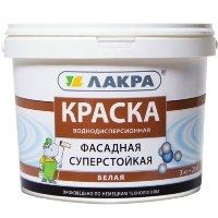 - Краска воднодисперсионная фасадная суперстойкая белая Лакра 3кг по выгодной цене 298 р. руб.;