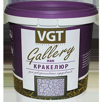 Лак представляет собой однородную вязкую жидкость белого цвета. После высыхания становится прозрачным. Готов к применению. Используется для внутренних работ в качестве промежуточного слоя между двумя водно-дисперсионными акриловыми красками ТМ „VGT” (ЛКМ) разного цвета, при этом, сам лак, оставаясь прозрачным, растрескивает финишную краску, проявляя в трещинах нижний слой.