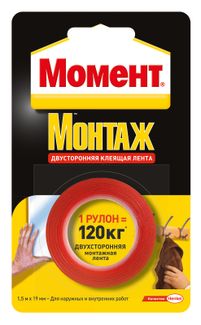 - ЛЕНТА МОМЕНТ КЛЕЯЩАЯ ДВУСТОРОННЯЯ 1,5 М до 120кг в каталоге Другие лакокрасочные материалы в России;