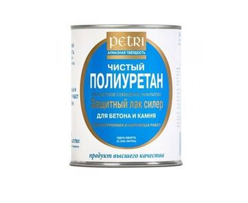 - Petri полиуретан. лак по бетону и камню, глянцевый (0,946л) по выгодной цене 1 650 р. руб.;