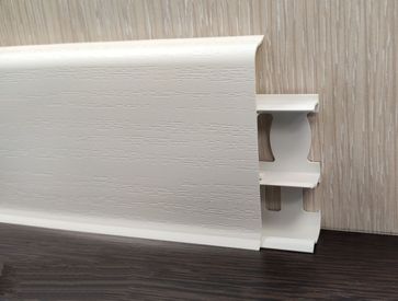 Плинтус ПВХ Ideal Деконика 001 белый – современный пластиковый плинтус, имеющий три кабель-канала и цельную лицевую часть с мягкими кромками. Плинтус безупречно сочетается с любыми современными отделочными материалами. Классические форма и цветовая гамма, а также благородный внешний вид гармонично подчеркнут декор как в домашнем интерьере, так и в современном офисе. Есть возможность использовать плинтусы в качестве наличников или кабельных коробов. Размер: 22007021 мм. None