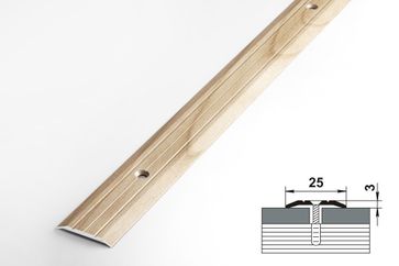 Профиль из алюминия служит для стыковки двух напольных покрытий. Длина 1800мм. ширина 25мм. Предназначен для декоративной стыковки двух одноуровневых покрытий, но может быть использован и по другому назначению. Профиль имеет отверстия для открытого монтажа, удобен в установке, не подвергается окислению и имеет обширную цветовую гамму. Каждый профиль поставляется в индивидуальной упаковке, оснащенной пластиковым европодвесом, в комплекте с саморезами и дюбелями. None