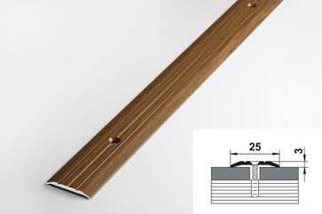 Профиль из алюминия служит для стыковки двух напольных покрытий. Длина 900мм. ширина 25мм. Предназначен для декоративной стыковки двух одноуровневых покрытий, но может быть использован и по другому назначению. Профиль имеет отверстия для открытого монтажа, удобен в установке, не подвергается окислению и имеет обширную цветовую гамму. Каждый профиль поставляется в индивидуальной упаковке, оснащенной пластиковым европодвесом, в комплекте с саморезами и дюбелями. None