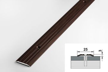 Профиль из алюминия служит для стыковки двух напольных покрытий. Длина 900мм. ширина 25мм. Предназначен для декоративной стыковки двух одноуровневых покрытий, но может быть использован и по другому назначению. Профиль имеет отверстия для открытого монтажа, удобен в установке, не подвергается окислению и имеет обширную цветовую гамму. Каждый профиль поставляется в индивидуальной упаковке, оснащенной пластиковым европодвесом, в комплекте с саморезами и дюбелями. None