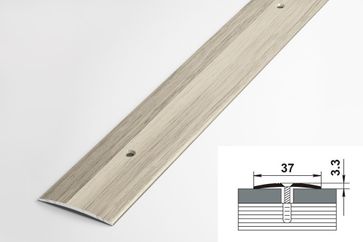 Профиль из алюминия служит для стыковки двух напольных покрытий. Длина 900мм. ширина 37мм. Предназначен для декоративной стыковки двух одноуровневых покрытий, но может быть использован и по другому назначению. Профиль имеет отверстия для открытого монтажа, удобен в установке, не подвергается окислению и имеет обширную цветовую гамму. Каждый профиль поставляется в индивидуальной упаковке, оснащенной пластиковым европодвесом, в комплекте с саморезами и дюбелями. ХАРАКТЕРИСТИКИ