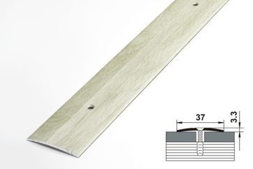 Профиль из алюминия служит для стыковки двух напольных покрытий. Длина 900мм. ширина 37мм. Предназначен для декоративной стыковки двух одноуровневых покрытий, но может быть использован и по другому назначению. Профиль имеет отверстия для открытого монтажа, удобен в установке, не подвергается окислению и имеет обширную цветовую гамму. Каждый профиль поставляется в индивидуальной упаковке, оснащенной пластиковым европодвесом, в комплекте с саморезами и дюбелями. ХАРАКТЕРИСТИКИ