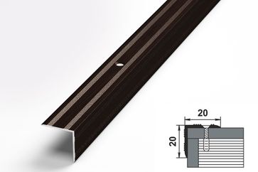 Угловой профиль из алюминия служит для защиты углов и ступеней лестницы. Длина 900мм. Размер горизонтальной стороны 20мм. Вертикальной 20мм.