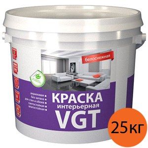 - ВГТ краска интерьерная белоснежная (25кг) VGT краска для стен акриловая влагостойкая матовая ВД-АК-2180 (25кг) по выгодной цене 1 082 р. руб.;