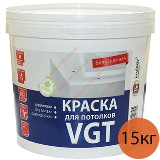 - ВГТ краска для потолков белоснежная (15кг) VGT краска для потолков акриловая матовая ВД-АК-2180 (15кг) по выгодной цене 597 р. руб.;